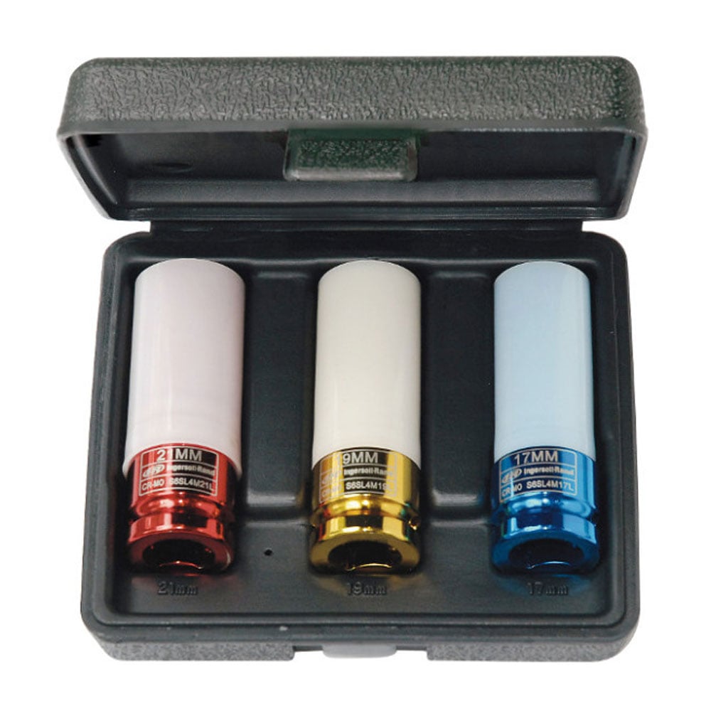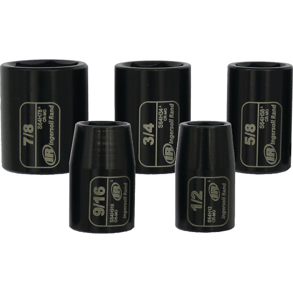 Ingersoll Rand 8PC SK3H8N Hex Universal SAE Impact Socket Set, 3/8” Drive. Warranty: Lifetime Limited Special Features: Impact-grade toughness Chrome-molybdenum steel Drive Size: 3/8” Drive Type: Square Finish: Chrome-molybdenum steel